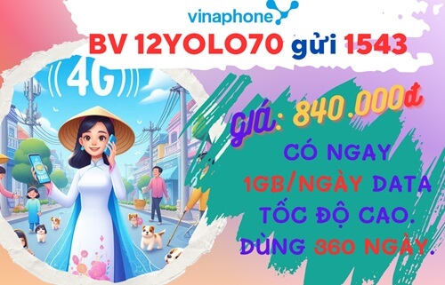 Đăng ký gói cước 12YOLO70 Vinaphone dùng data giá rẻ cả năm