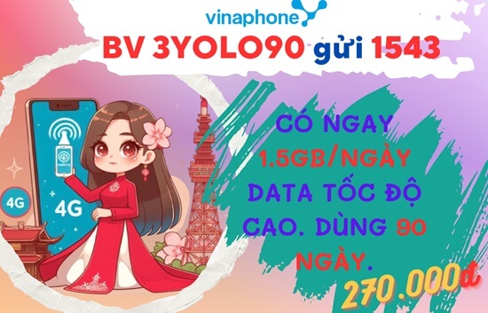 Đăng ký gói cước 3YOLO90 Vinaphone chỉ 270k dùng 90 ngày