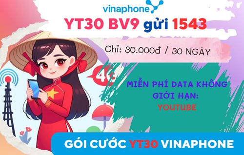 Gói cước YT30 Vinaphone lướt Youtube không giới hạn Dung lượng 30 ngày